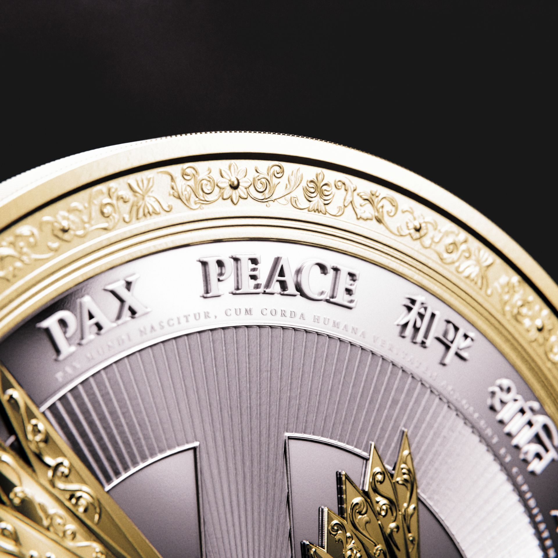 PAX — Peace, Struck in Metal PAX, the Latin word for peace, marks the birth of a new flagship bullion series from Pressburg Mint — a series designed not only to store value, but to carry a message to the world. In an era defined by uncertainty, PAX stands as a universal symbol of unity and shared human values. Bearing the word peace expressed in multiple languages and scripts reminds us that while languages differ, the aspiration for peace is truly global. Innovation at the Core True to Pressburg Mint’s DNA, the PAX series redefines what modern bullion can be. Cutting-edge production methods meet refined contemporary design, resulting in coins and coinbars that are as technologically advanced as they are visually striking. Precision-engineered surfaces, carefully balanced reliefs, laser microtexturing and advanced latent imaging security features elevate PAX beyond traditional bullion, ensuring a memorable aesthetic experience, whilst securing authenticity, purity and