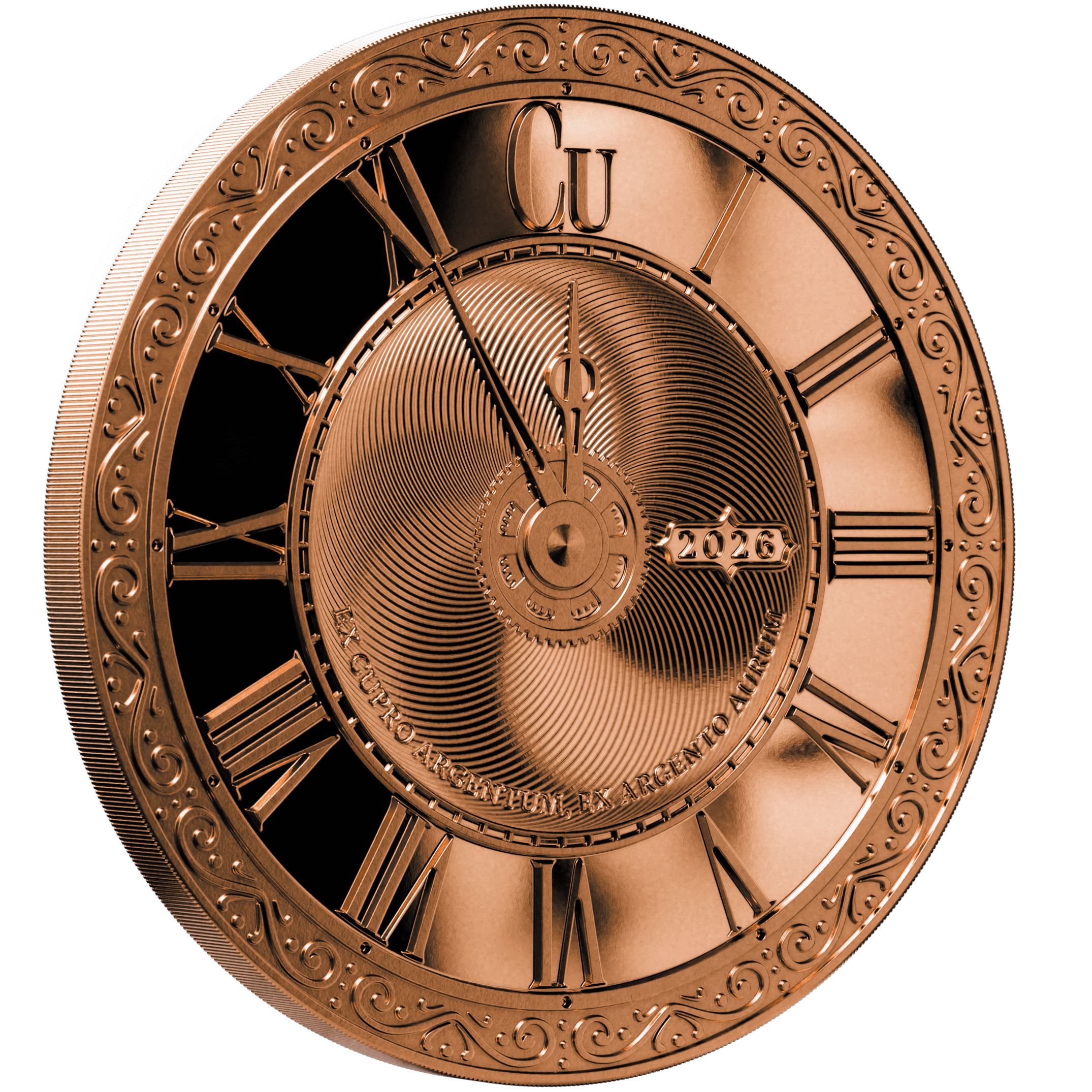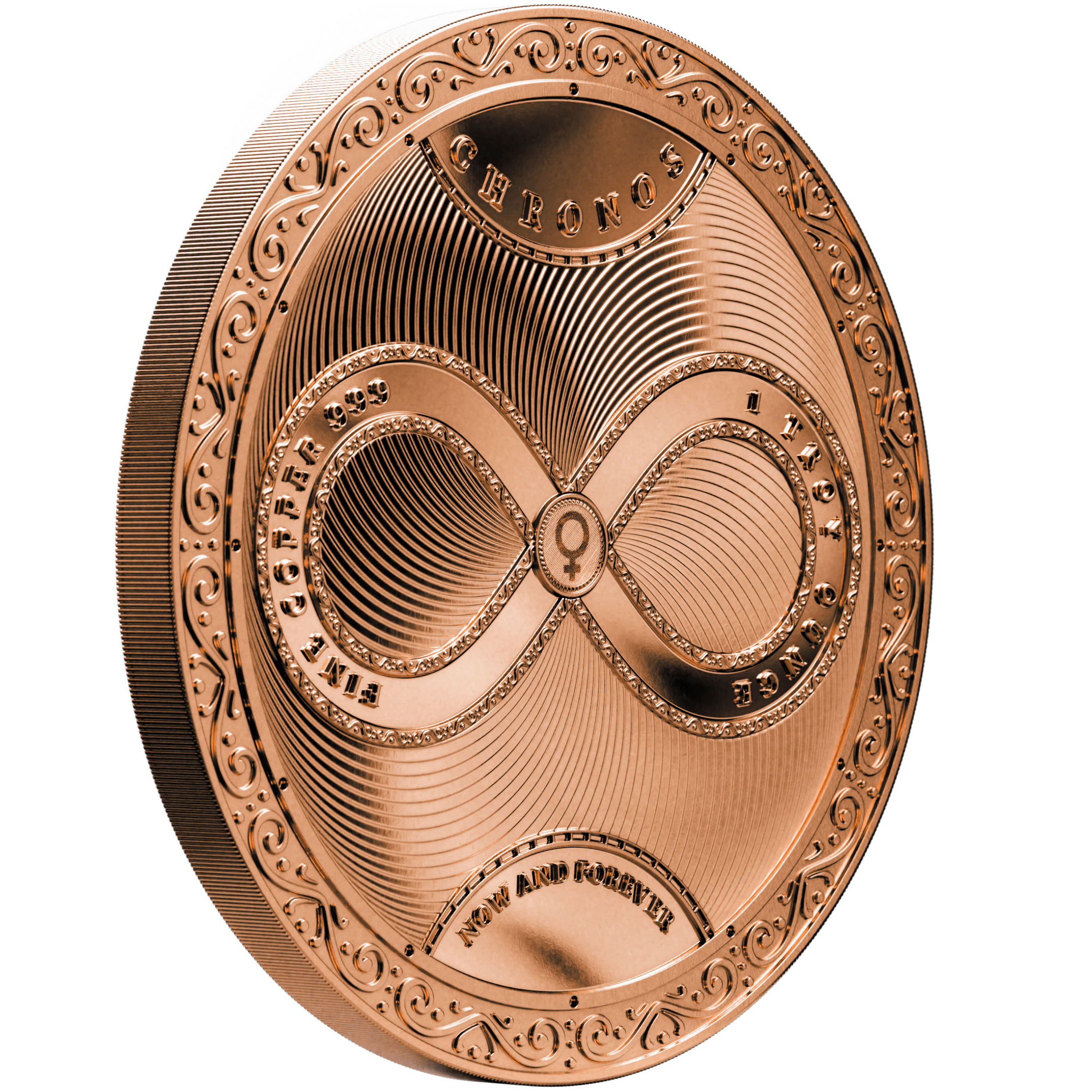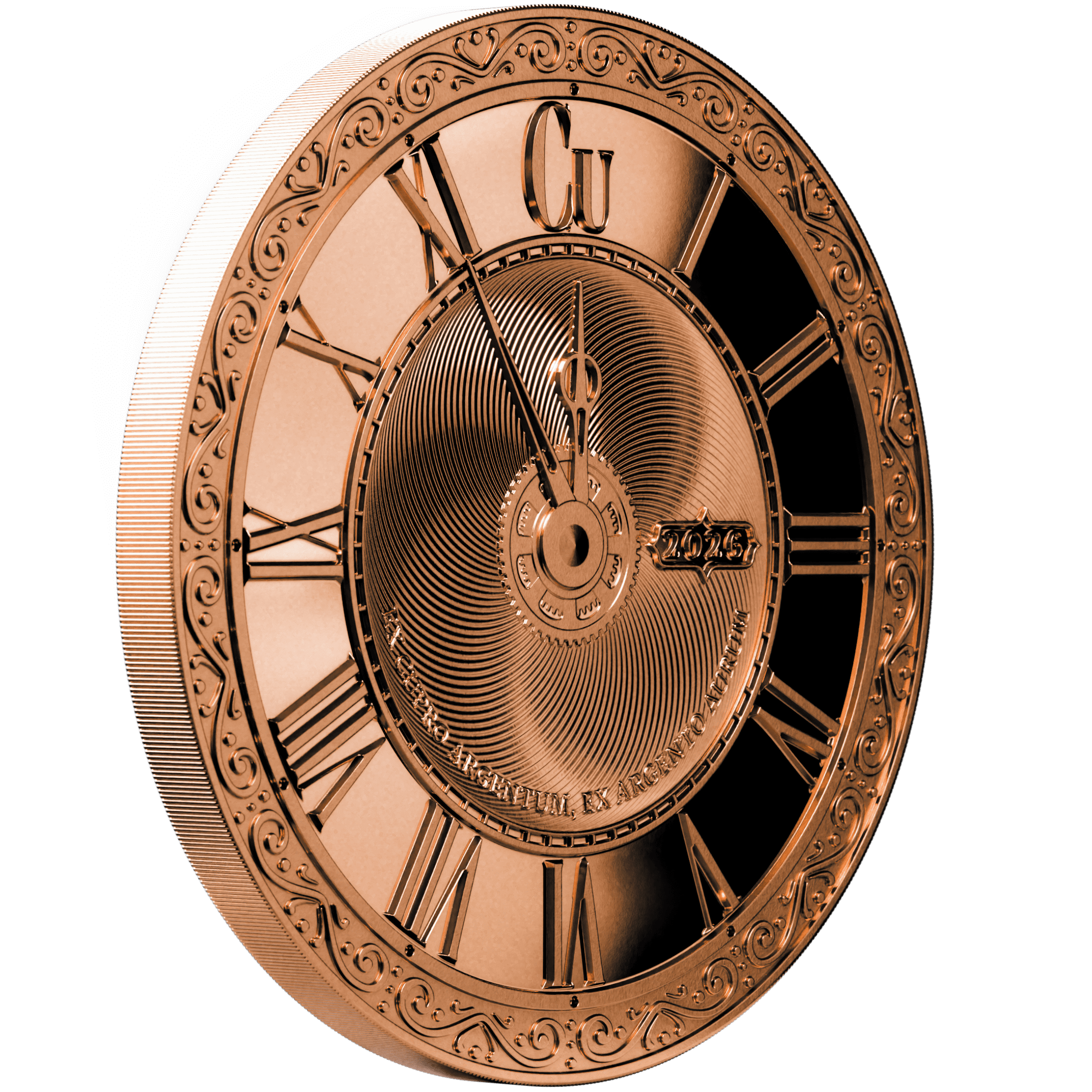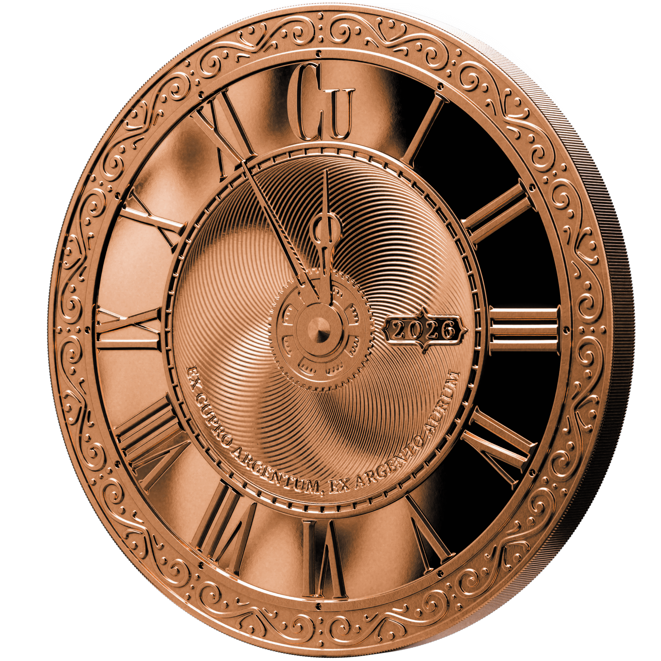 The Chronos series launched not as a coin, but as a round — a pilot piece that tested a design language that would go on to define a decade of releases. The 2026 Copper Round returns to that origin.